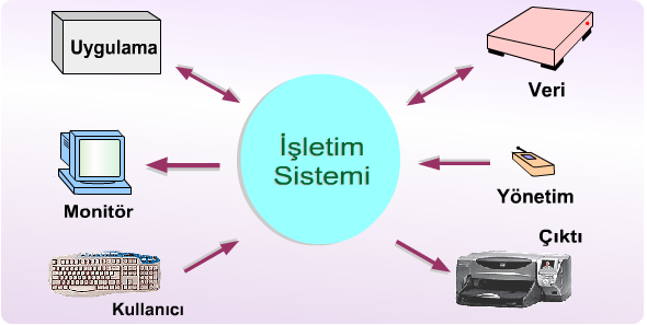 İşletim sistemi, bilgisayar sistemini oluşturan donanım ve yazılım nitelikli kaynakları kullanıcılar arasında kolay, hızlı ve güvenli bir işletim hizmetine olanak verecek biçimde paylaştıran, bunu yaparken, bu kaynakların kullanım verimliliğini en üst düzeyde tutmayı amaçlayan bir yazılım sistemidir. Bu bağlamda, işletim sisteminin, sistem kaynakları olarak ana işlem biriminin, ana belleğin ve giriş/çıkış birimlerinin, kullanıcılar arasında verimli paylaşımını sağlayan işlevleri, ana işlem biriminin yönetimi, ana belleğin yönetimi, kütük yönetimi gibi adlarla anılan değişik kesimler içinde toplanır. İşletim sisteminin yerine getirdiği işlevler, çoğu kez yönetim işlevleri olarak tanımlanır. Yönetim sözcüğü Türkçe'de, daha çok insanlar için kullanılan bir sözcük olmakla birlikte burada, anlamı, kaynakları belirlenen amaca en yüksek verimi elde edecek biçimde yönlendirme biçiminde genişletilerek kullanılmıştır.