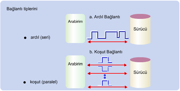 • Sürücüden okunan bilginin arabirime aktarılmasından sonra arabirimden de ana belleğe aktarılması gerekir. Giriş/Çıkış Sistemi adlı bölümde açıklanacağı gibi, bu aktarımların süreleri erişim süreleri toplamına katılmayacak kadar küçüktür.