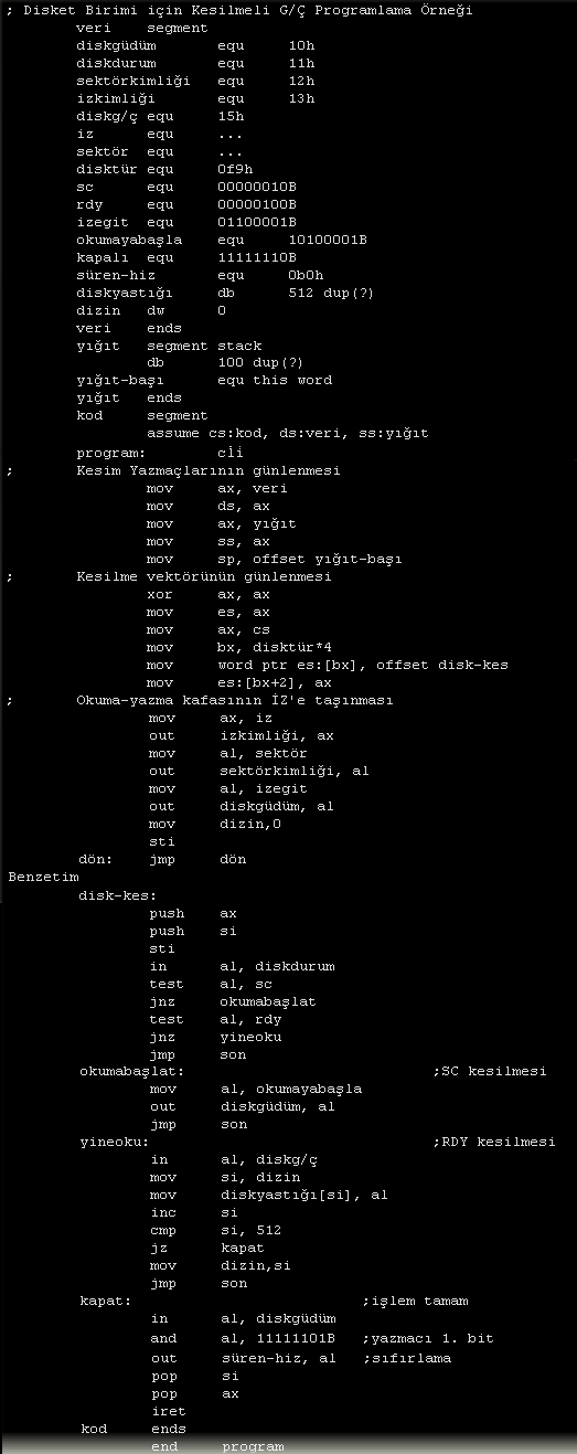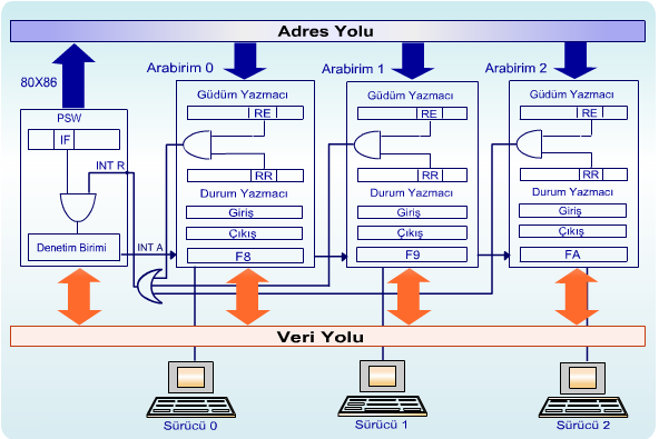 - Giriş/çıkış sürücüsü (ya da aygıtı) ile