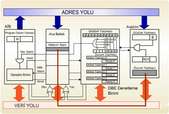 Doğrudan bellek erişim işlemleri de giriş/çıkış sistemi kapsamında ele alınır. Giriş/çıkış sistemi kesimi, giriş/çıkış arabirimleri, ana işlem birimi, doğrudan bellek erişim denetleme birimi gibi birimlerin en alt düzeyde programlandığı, donanım ayrıntısına bağımlı işlemlerin ele alındığı bir kesim olarak çekirdek katmanda yer alır. Bu kesim Giriş/Çıkış Sistemi adlı bölümde ayrıntılı olarak incelenecektir.